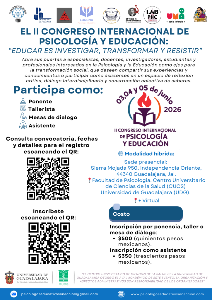 Abre sus puertas a especialistas, docentes, investigadores, estudiantes у profesionales interesados en la Psicología y la Educación como ejes para la transformación social, que deseen compartir sus experiencias у conocimientos o participar como asistentes en un espacio de reflexión crítica, diálogo interdisciplinario y construcción colectiva de saberes.